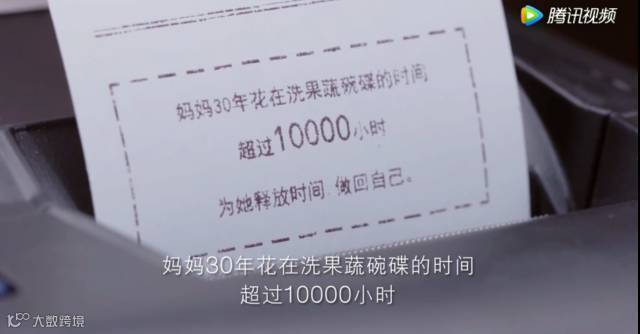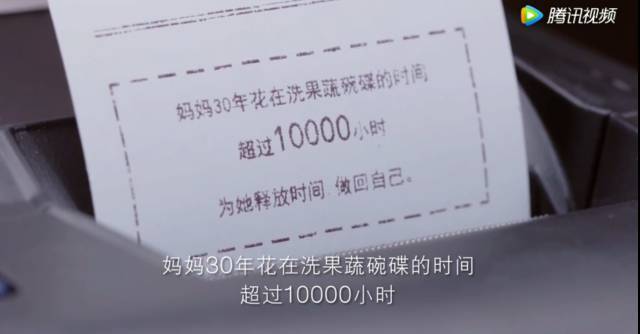 打印出来的小票背面显示,妈妈30年花在洗果蔬碗碟的时间超过10000小时……