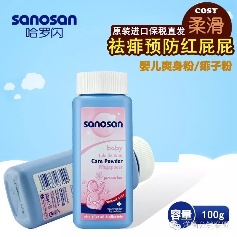 淘口令:复制这条信息,打开手机淘宝即可看到【德国sanosan哈罗闪婴幼儿爽身粉/痱子粉100g 防痱止痒保税区直发】¥AAFJptHL¥http://tmqd.me/h.uvS64?cv=AAFJptHL&sm=e037cb