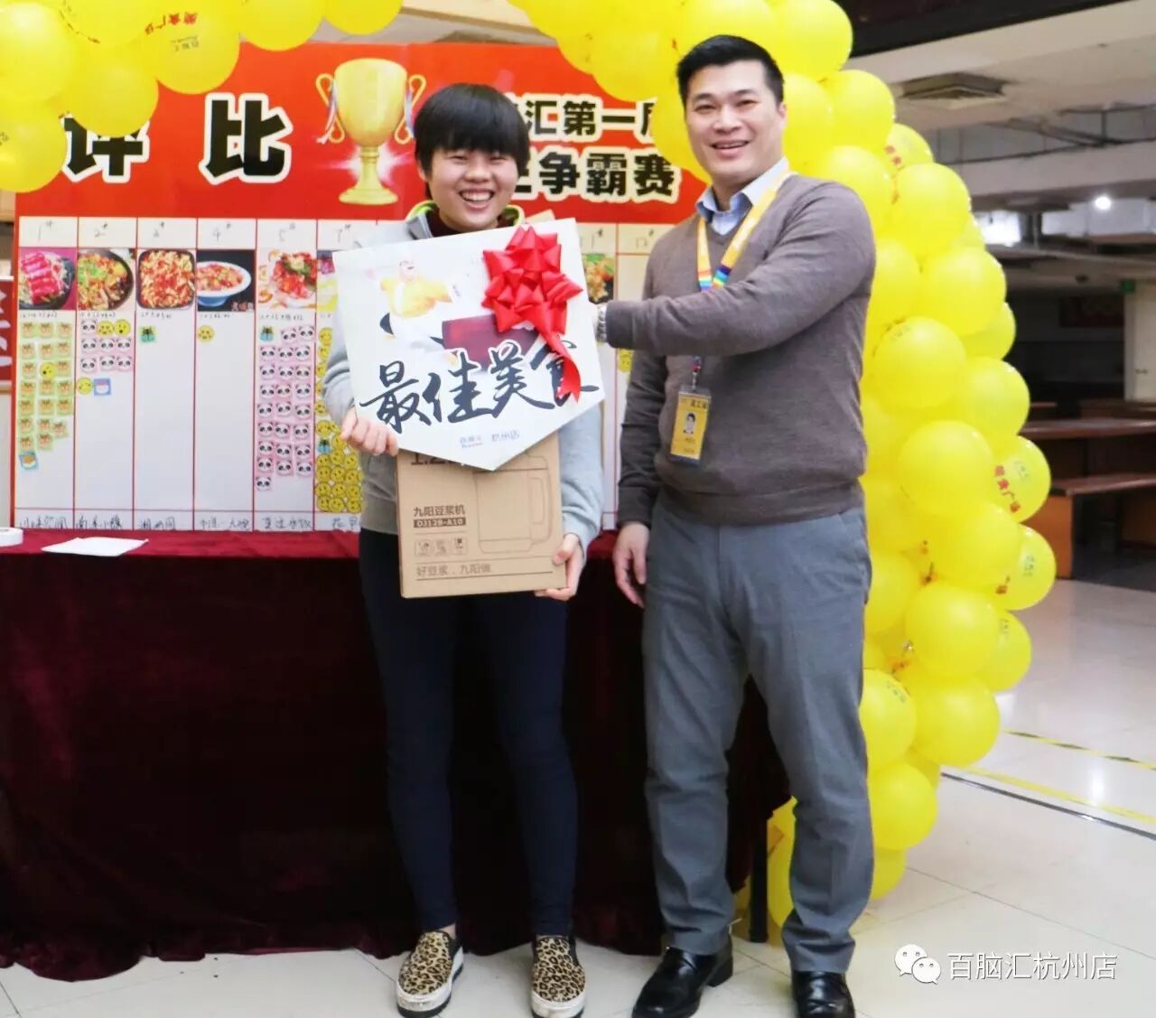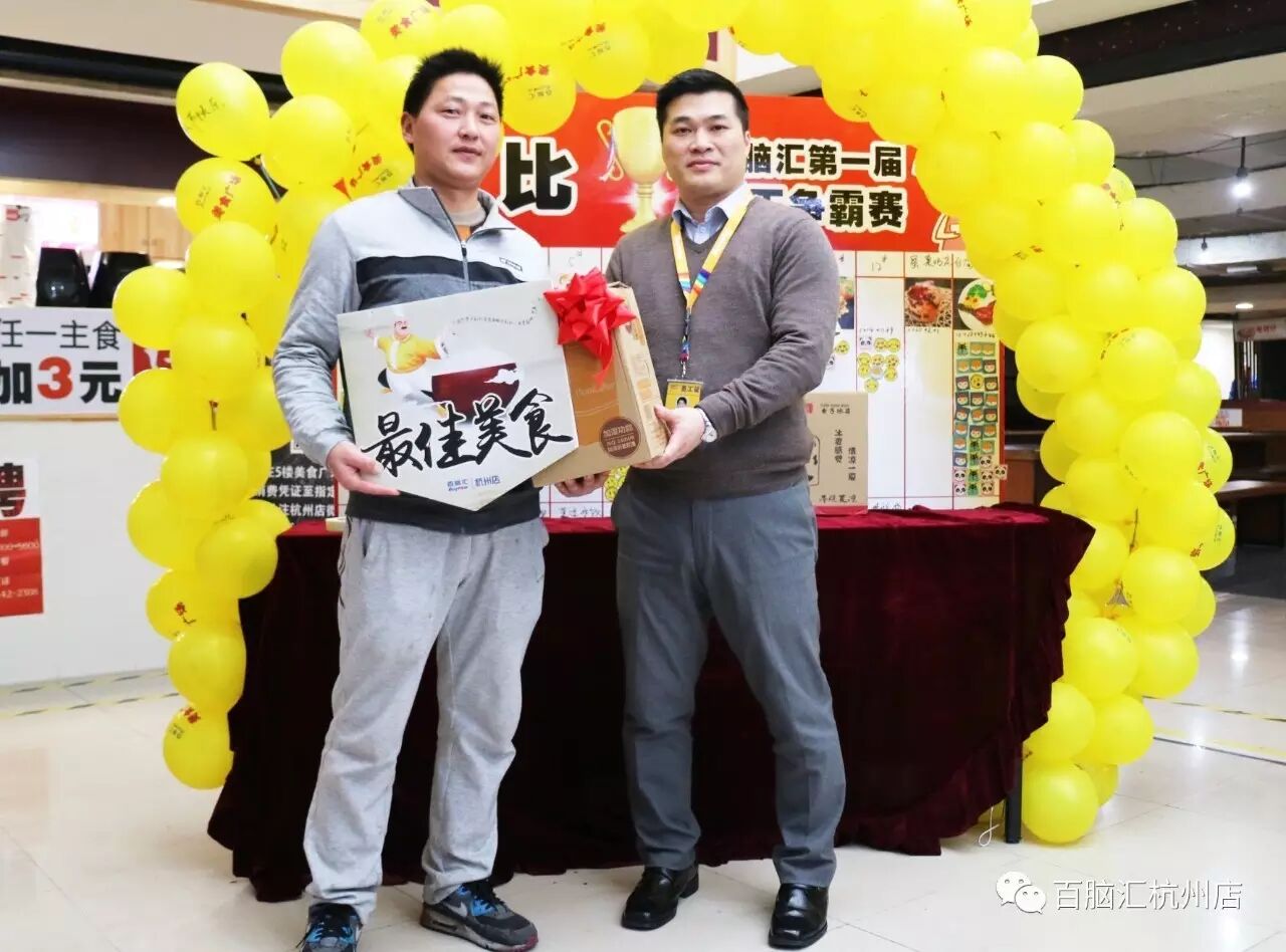2017年2月17日下午15:30,百脑汇杭州店第一届厨王争霸赛在5楼美食广场完美落幕!最终,7号档口老味道以170票的最高票数,获得第一名;花车台湾妈妈以168票,获得第二名;新晋花车莫过水饺以149票,获得第三名!非常感谢所有顾客和商家的支持,连续5天抱着对美食的热忱,来参与我们的活动。百脑汇杭州店也将继续努力,给你们带来更好更美味更健康的美食!