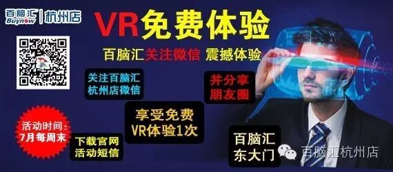 关注百脑汇杭州店微信,下载官网活动短信,并分享朋友圈即可至东门免费体验VR!
