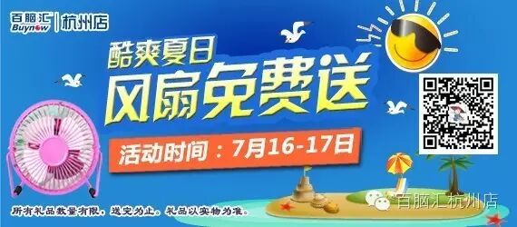 关注百脑汇杭州店微信,下载官网活动短信,并分享朋友圈即可凭短信至会员中心领取铁艺风扇一个!