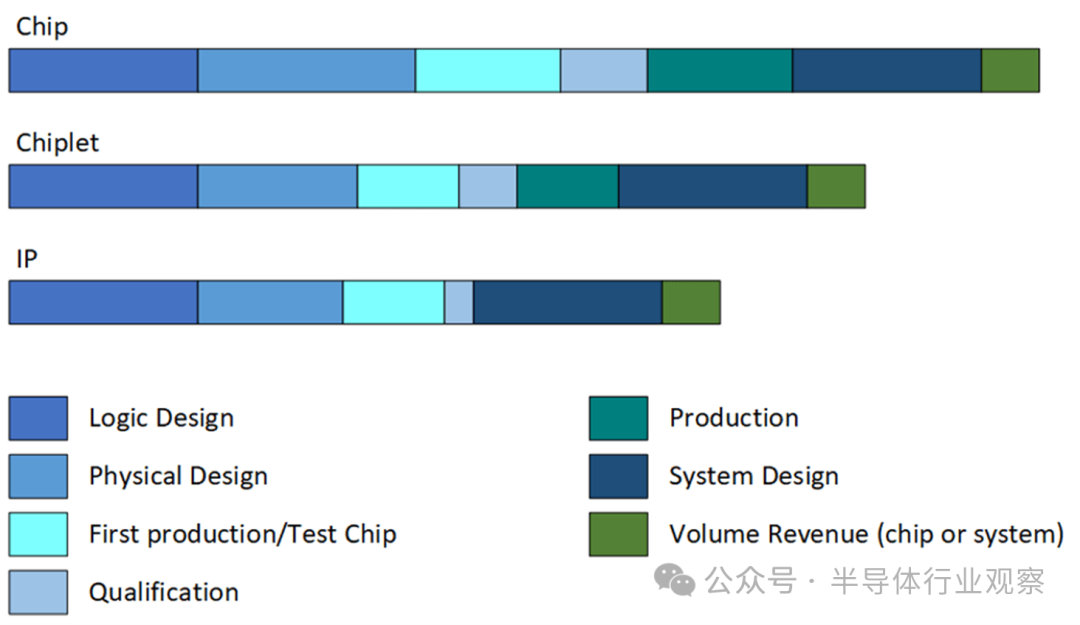 从理论上和简单的角度看,芯片的量产时间最长,而 IP 所需的时间最短。芯片比芯片需要更多的设计,生产必须包括封装。这也使其认证和生产时间更长。芯片可能会有更快的物理设计、制造和认证。IP 只需要测试芯片的物理设计、生产和认证,而不是生产芯片。它也不需要批量生产来上架。