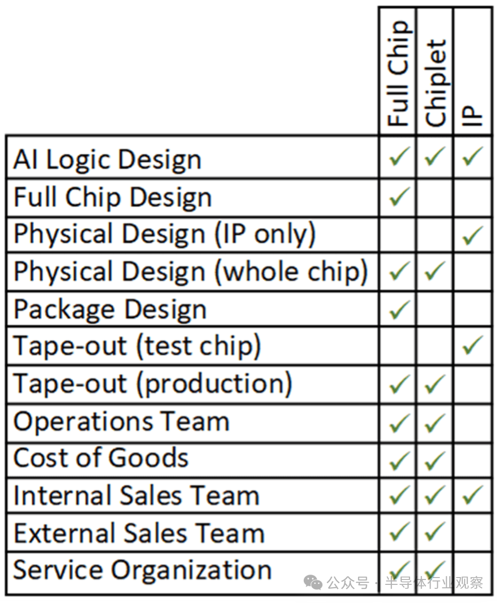 芯片是折衷方案。“芯片提供了一个生产硅片的机会,虽然收入不如芯片那么多,但比 IP 公司多,”Karazuba 说。“但它仍然会带来很多芯片公司需要的成本。”