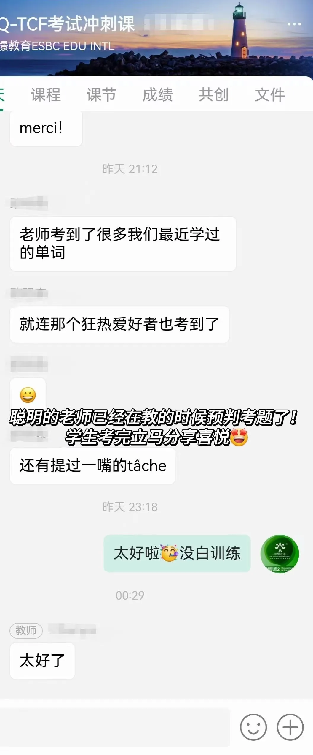 2、留学法语课程——为需要留学的同学设置系统学习课程,旨在高分冲刺TCF 、TEF、DELF、DALF等各类法语考试。
