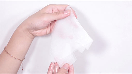 看着就很薄,婚纱面膜家招牌的面膜纸,柔软亲肤,清清爽爽的肤感,服帖舒适,纤薄的面膜纸,牢牢抓住淳淳的精华,让肌肤更多的吸收精华,大口大口得喝水!