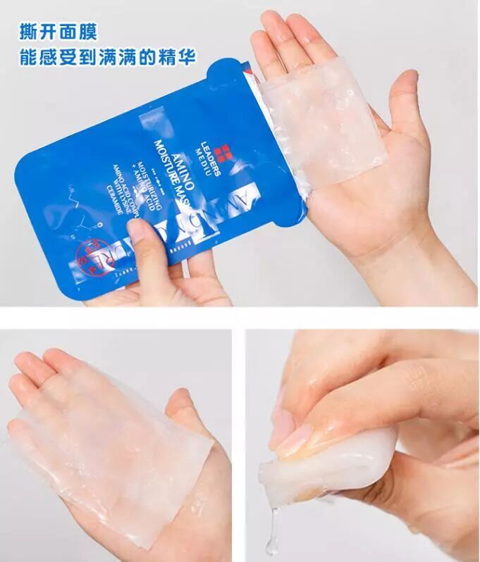 红色款和蓝色款的面膜纸是一样哒,都是蚕丝面膜,外面带有网格保护膜,保护面膜水分不流失,精华很充分。
