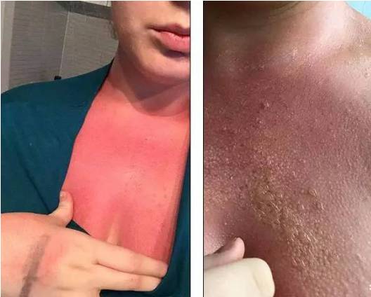在游玩结束之后,她发现自己的手和胸部被严重晒伤,经过检查后医生表示,她的晒伤由于太过严重,可能需要植皮。