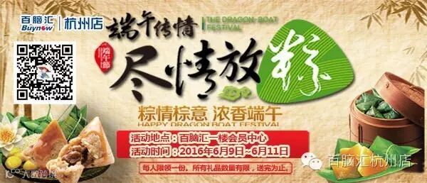关注百脑汇杭州店微信,下载官网活动短信,并分享朋友圈即可至一楼会员中心领取粽子礼盒一份