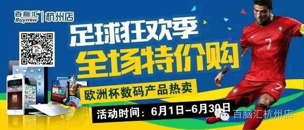 活动方式:通过微信或新浪微博参与每周赛事竞猜,猜中者周末可至门店领取百脑汇大礼包一份。更有机会抽取2016欧洲杯比赛同款足球一枚。