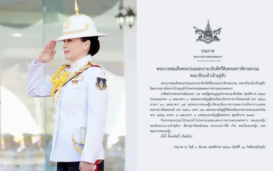 巴帕颂上位后,王后苏提达就拿下了海军、空军上将头衔,加上王后之前有的陆军上将头衔,直接凑齐海陆空。