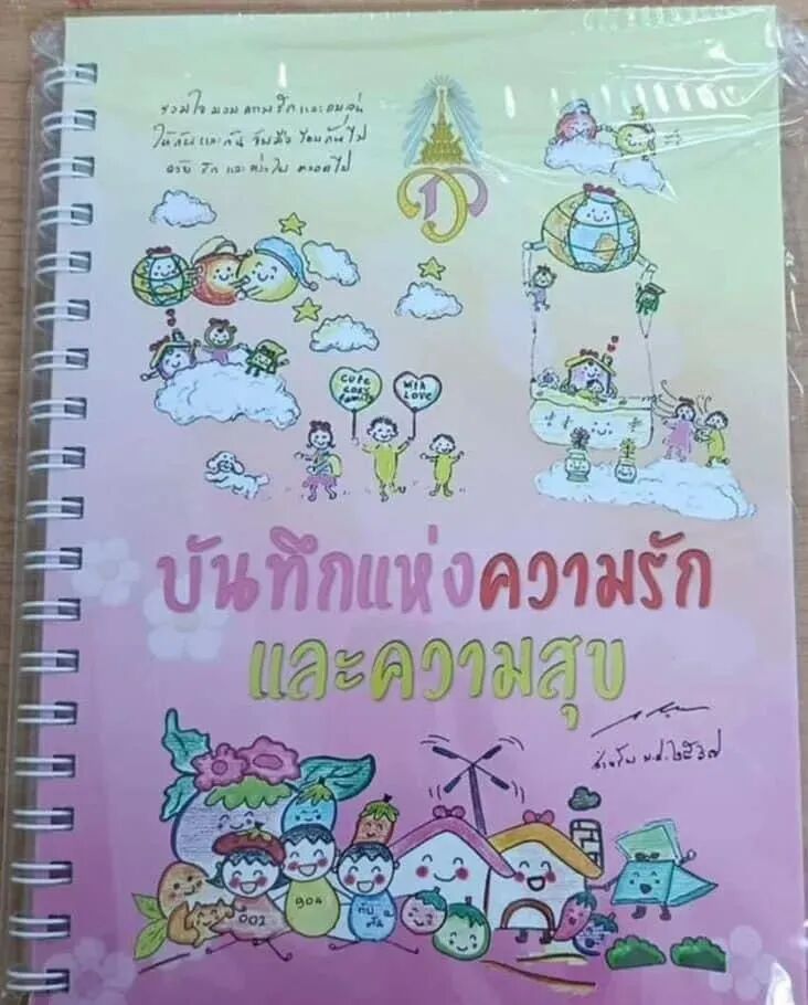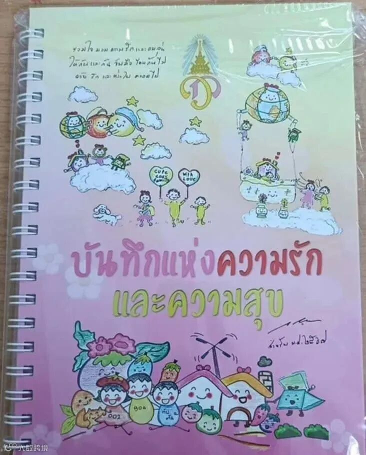 就连给欧拉弄送礼物的箱子外面,都专门定制了同款卡通画,还包括一本名为“爱与幸福的记录”的卡通本子,泰王亲笔涂鸦的哦~