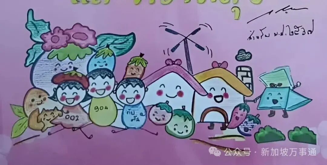 据说,泰王还为欧拉弄画了独一无二的卡通画。(短发的002粉色小人就是欧拉弄)。