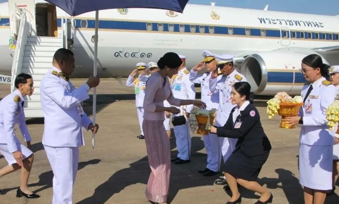乘坐皇家专机回老家黎逸府,当地还举办了盛大的“接驾”仪式: