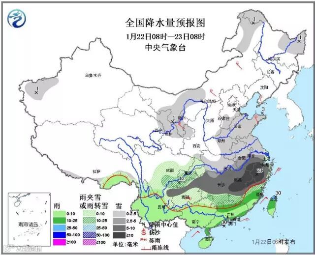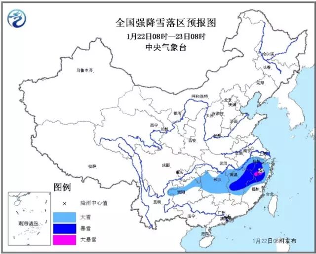 预计,22日08时至23日08时,浙江大部、安徽南部、江西中北部、湖北东南部、湖南中北部、贵州北部等地有大到暴雪,积雪深度有3~12厘米,其中浙江西部局地有大暴雪(20~23毫米),积雪深度10~20厘米。
