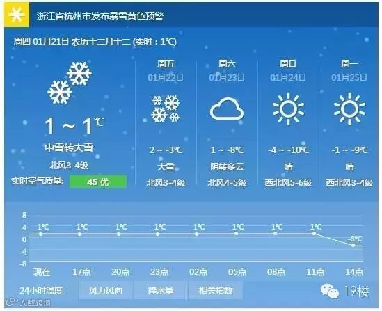 除此,杭州市气象台于昨天下午15时18分发布的暴雪黄色预警也在继续!!!