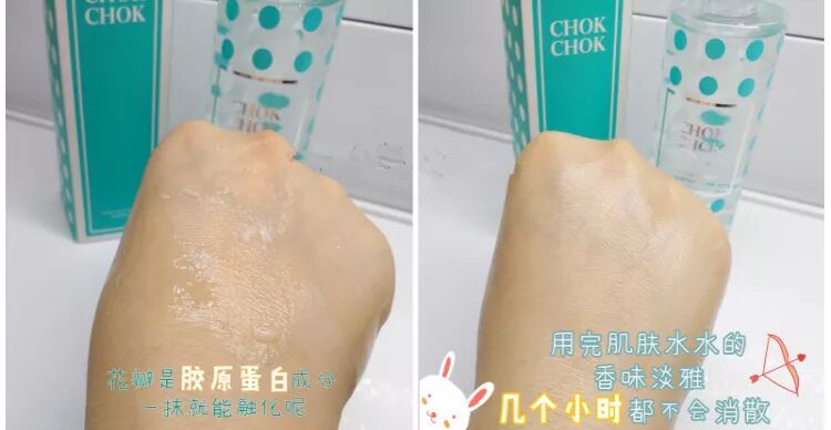 凝露状的身体乳抹在身上,有一点涂芦荟胶的感觉,但是它百合+小苍兰的清新花香气明显要好闻上许多。