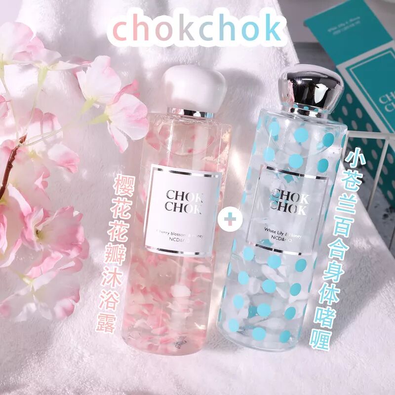 品名:韩国 Chokchok初出 丝绒樱花瓣沐浴露&小苍兰百合啫喱凝露身体乳
