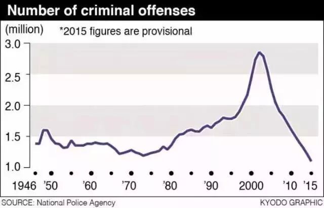 有数据显示,日本80-90年代的犯罪率达到了战后的高峰,甚至在千禧年前后达到了峰值,基本快达到了300万件犯罪总数。