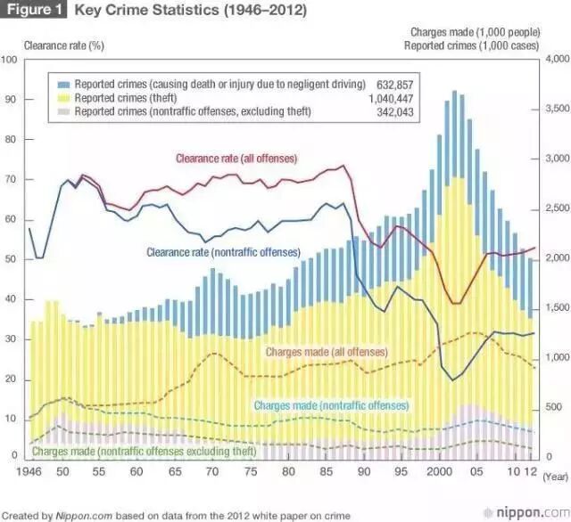 千禧年短暂的犯罪总数高峰仅仅维持不到十年时间就被打回战后的“原形”。有一说是日本警署破案率大幅度上升导致。