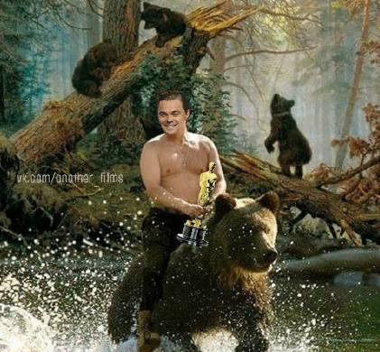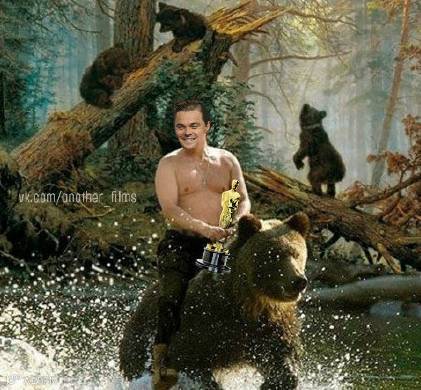 “熊:马上我就要得最佳男主了(然而你是一头母熊……)”“小李子:为什么不拍我,我李日熊不服!!!