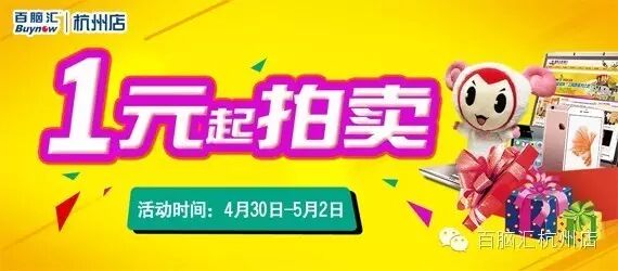 活动时间:4月30日~5月2日 活动地点:百脑汇东门 活动每天12、14点两个时间推出一款产品进行拍卖,关注百脑汇微信,凭当天购物小票即可获得百脑汇公仔等精美礼品一份。 (礼品数量有限,先到先得)
