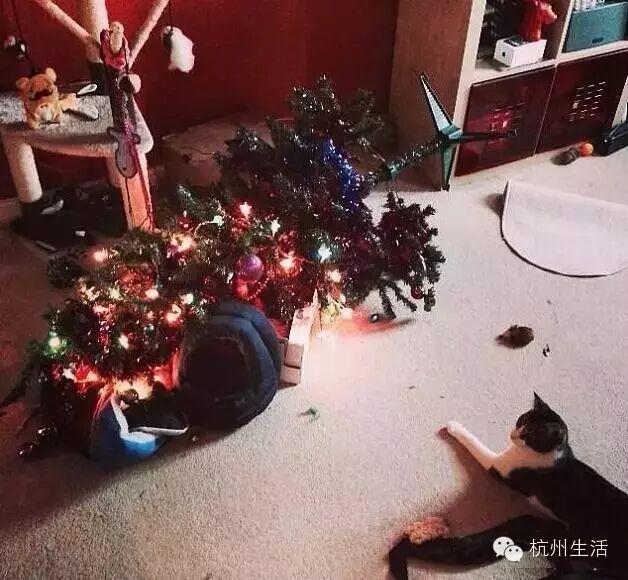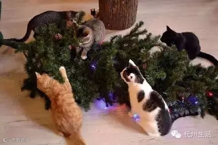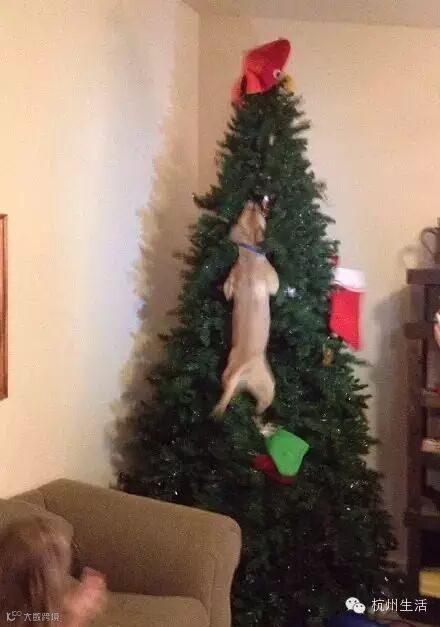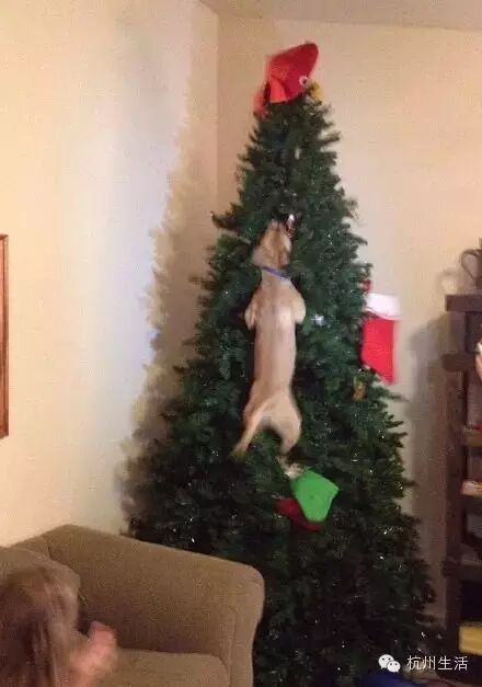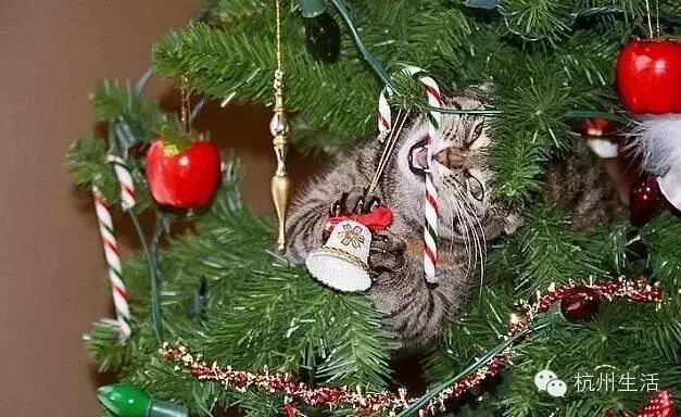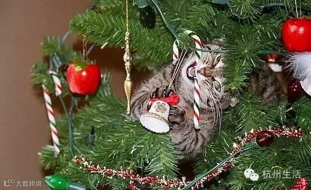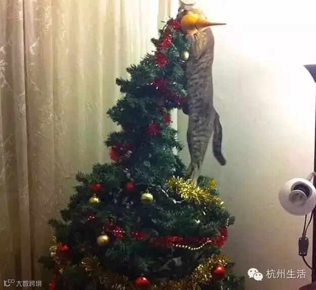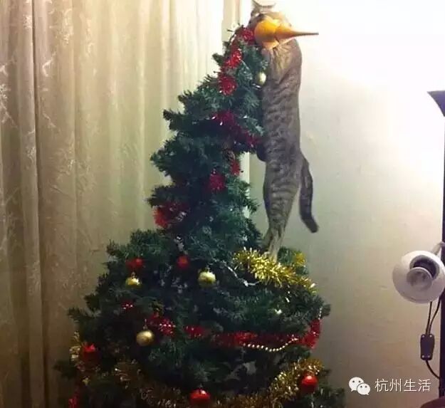 家里有猫猫狗狗的过圣诞节时就不要摆圣诞树了,否则还不够这些小婊砸作妖的,容易上天...