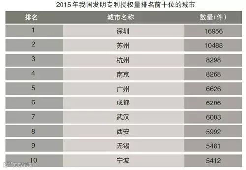 再来看看创新力,2015年,发明专利授权量达8298件,名列全国大中城市第三 。