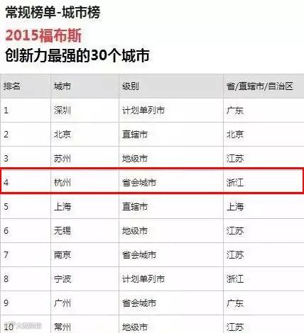 在2015年发布的城市创新力榜单中,我大杭州也是排名第四,力压上海!