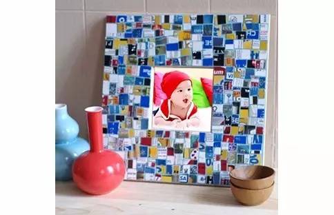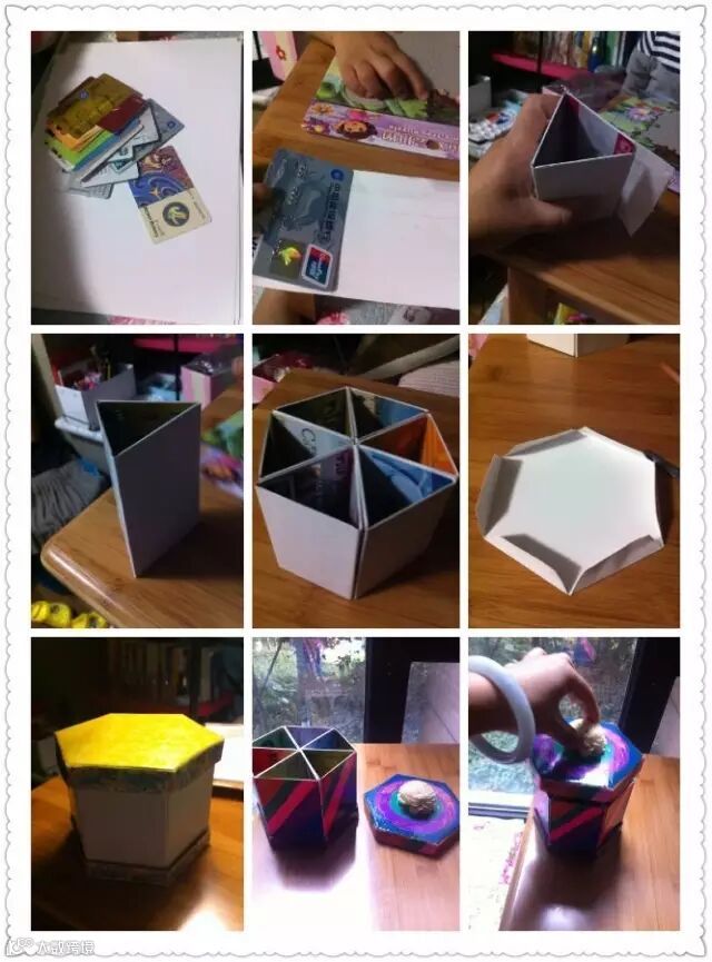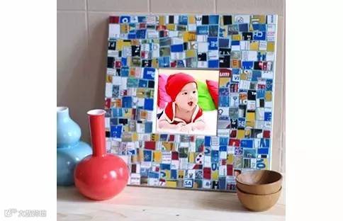 是废旧的会员卡、银行卡剪成小片粘贴而成的!