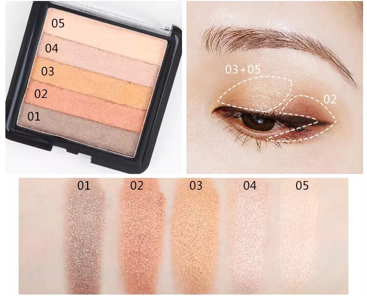 2号是偏暖色系的大地色。气质比较温和,偏橘一点的整体色调比1号基础色更显明艳,也更容易打造出深邃的眼窝。