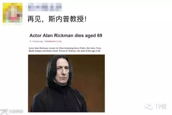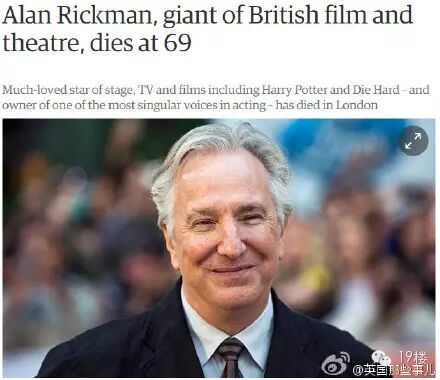 19楼小微其实听到这个消息的第一反应还是天呐,斯内普教授都69岁了?我对他的印象一直停留在哈利波特的斯内普教授里。