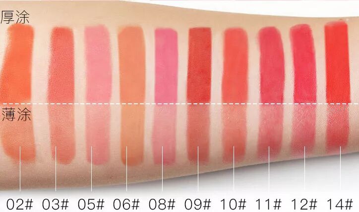 很水润的质地涂上一整天既不干也不黏,就是免不了有些粘杯。浓淡随心,每支都可以搭配不同风格的妆容,多涂几层显色度会更高哦~