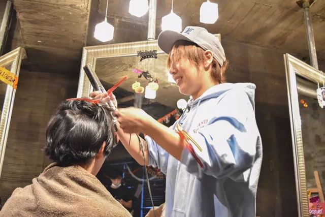 牛郎的第一步,就是做发型(仿佛在脑中浮现了杀马特...),沙龙店「backstage」,专门为夜晚工作的人做造型的店。牛郎基本都是晚上出勤,所以18点的时候沙龙店里就会人很多,日常满员。