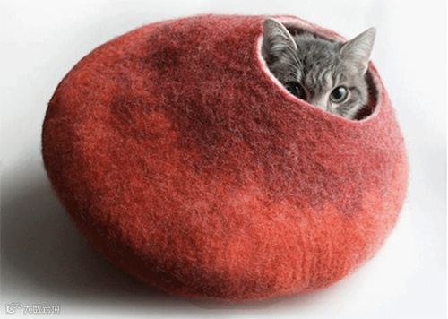 这是100%羊毛手工制作的毛毡猫窝,猫猫住进这样的窝就像在猫妈妈的怀抱下,这些茧型的猫窝不挑地方,放在地摊上、沙发上、床上都行,而且可以根据猫咪的体型大小剪裁出适合进出的洞口,完全洋气。小编觉得带着它遛猫也行,只是猫奴的你得抱着猫窝遛。