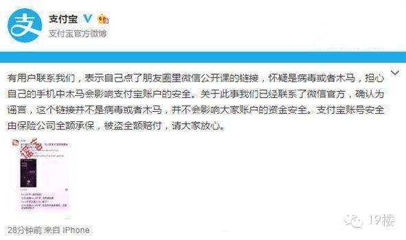 其实这个谣言很好破解呀:如果真的是点朋友圈里的微信链接会转走你支付宝里的钱,根本不用大家操心,马云早就去找马化腾了!!