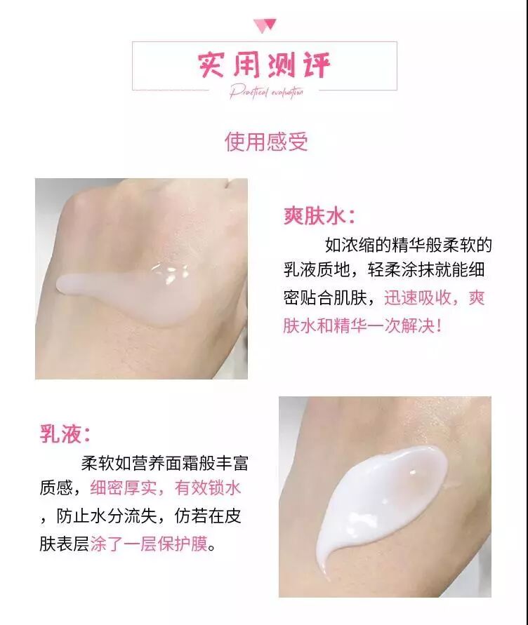 这款水乳非常适合换季使用。首先它是有修复肌肤屏障的功效,而且滋润度比较高。质地非常清爽不会黏腻,吸收能力真的很好很好,所以油皮也不怕!干皮涂上水乳后,会有非常舒适的细腻贴合感。水的质地像是和乳液二合一,流动性很好,肤感很好~