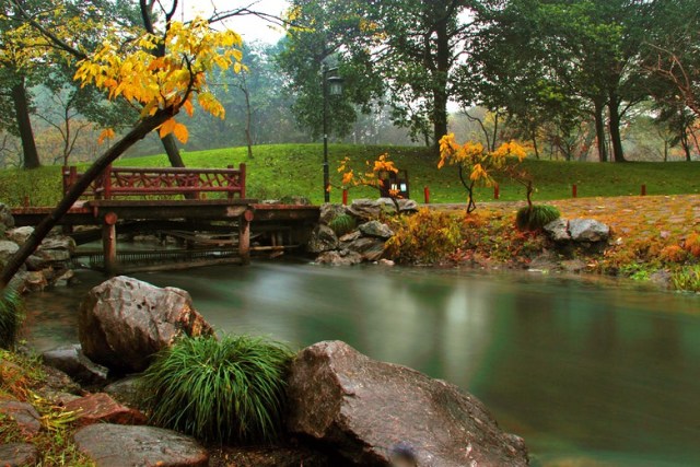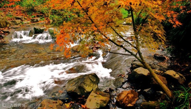 中间交汇的地方,叫做“溪中溪“,这里也是整个九溪的中心区域,九溪烟树公园、理安寺、瀑布等景点都集中在这里,当然还有那块著名的刻着“九溪烟树”的大石头,许多游客在这儿与之合影。