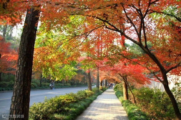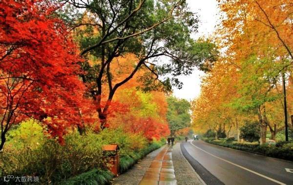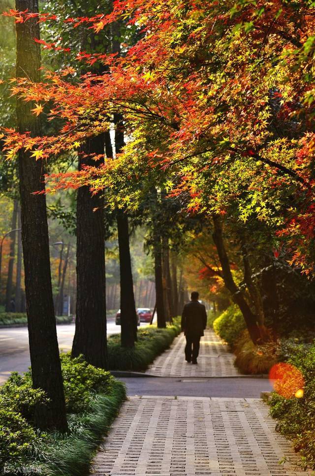 走过花圃,来到龙井路上,这里便是杭城最佳赏秋之路。