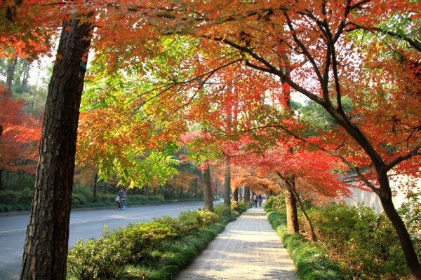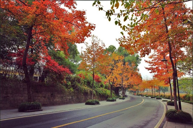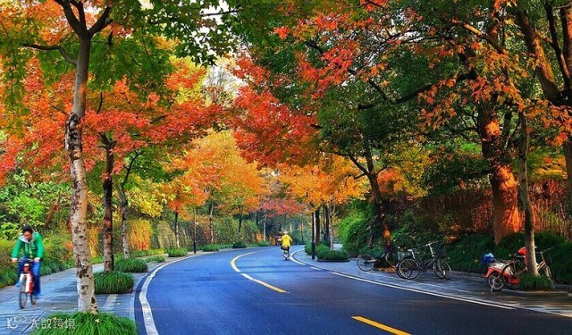 倘若你还能醒过来走出茶楼,最好骑车去灵隐上香,灵隐路是杭城最佳的赏秋去处。