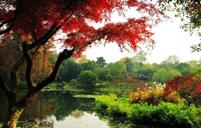 说到西湖,一般首先想到的是春天的桃红柳绿,夏日的荷花。其实,深秋时节来西湖,你会欣赏到“霜叶红于二月花”的美景。
