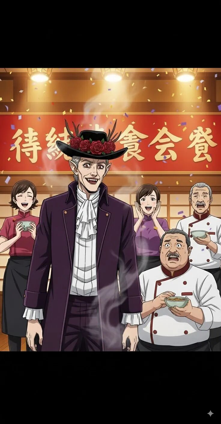 “根据附件人物角色形象,给我6张关于僵尸先生开饭馆的有趣故事的图片,要求诙谐幽默,有一定讽刺意味,故事情节需要连贯顺畅。”
