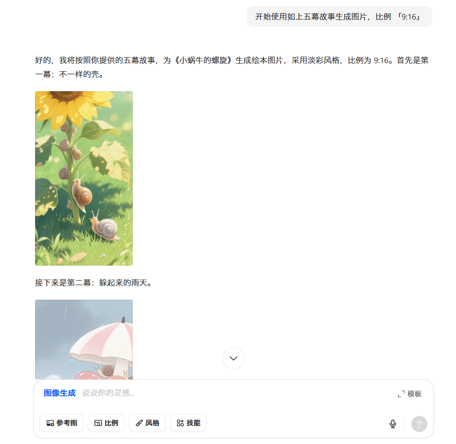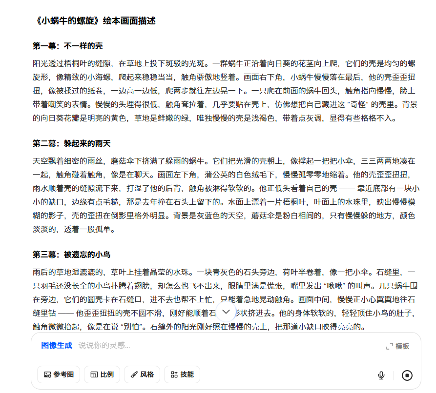 换个思路,我们可以先让AI生成绘本故事的文字脚本。