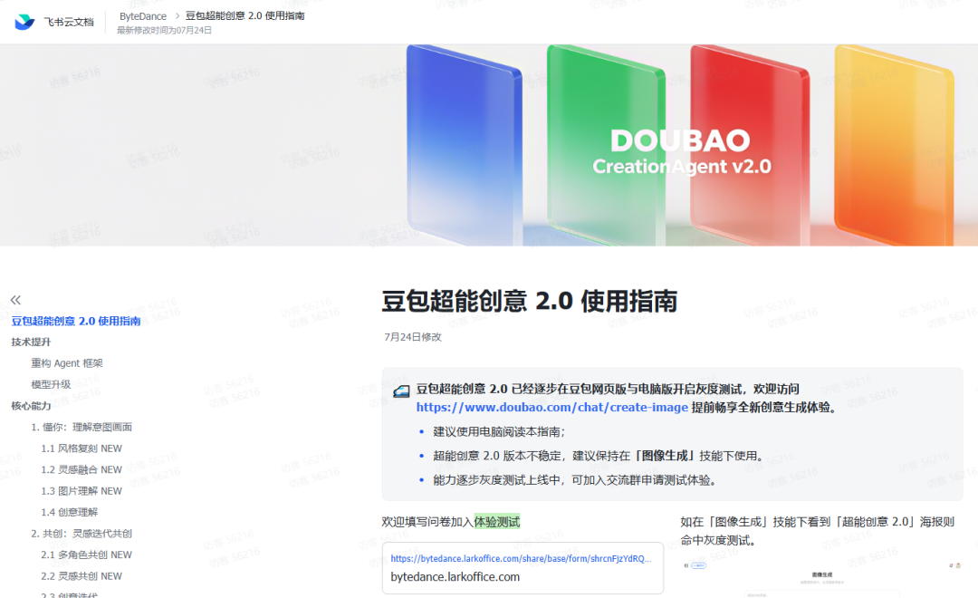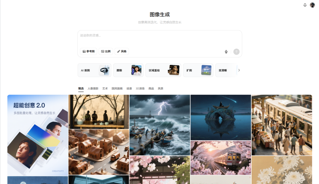 • 判断方法:在「图像生成」技能页若出现「超能创意 2.0」海报,即代表命中灰度,可立即体验。 - 官方体验地址