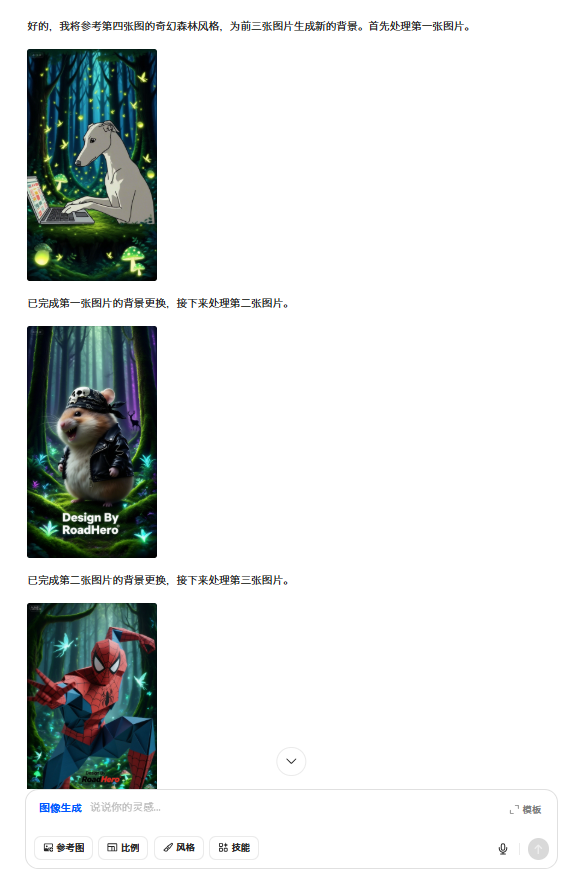 仅在「图像生成」技能下才能调用「超能创意 2.0」,其他技能页暂时看不到。 - 稳定性提示