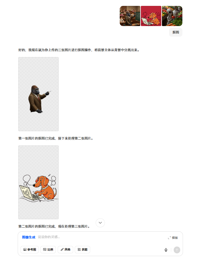 对于背景替换和批量抠图等任务,豆包2.0也能轻松处理。