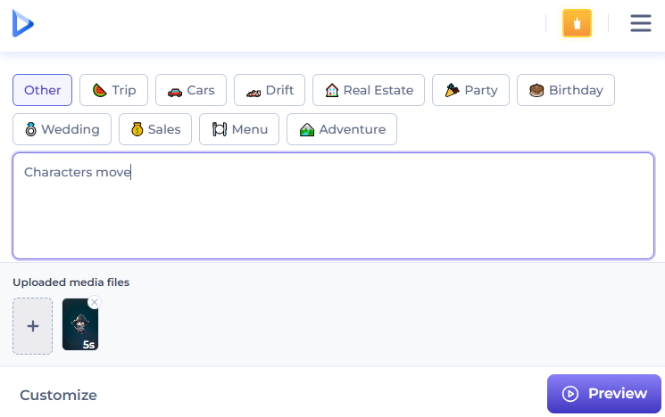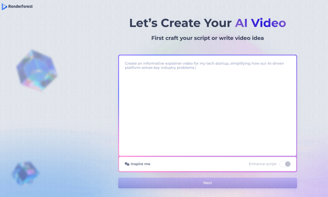 在 Renderforest 平台,我们可以通过输入文本提示词来快速生成视频。平台也支持点击“随机提示词”来获取创作灵感。