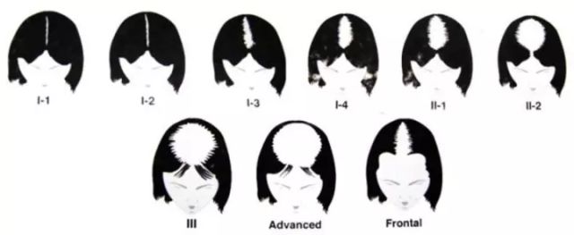 男性通常表现为发际线往后移也可有出现头顶部的头发变稀变细。女性则常表现为头顶部毛发稀疏。