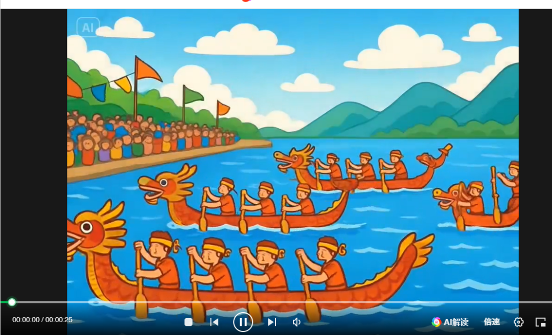 “附件是五个端午节划龙舟场景视频动画,请按场景顺序整合成一个完整的视频。”