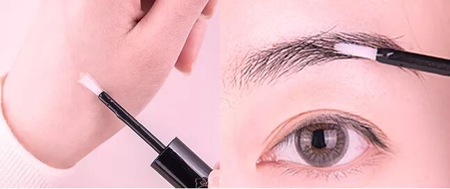 和旧版的使用方法相同,用于所有眉妆的最后一步,在修眉、梳眉、给眉毛上色后。就像涂指甲油一样挤掉多余液体,再快速均匀地从头到尾迅速轻刷一层,等液体彻底干透就完成了。最好不要涂出眉毛范围,不然近看能看出皮肤上有一层膜。
