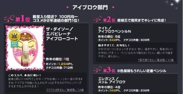 2004-2007连续4年获得日本@COSME眉毛彩妆部门冠军,2008年更获得了殿堂级大赏哦,这基本相当于日妆最高级别的终身成就奖啦!这么低的价格能够受到如此好评属实不易,实力派无误了!